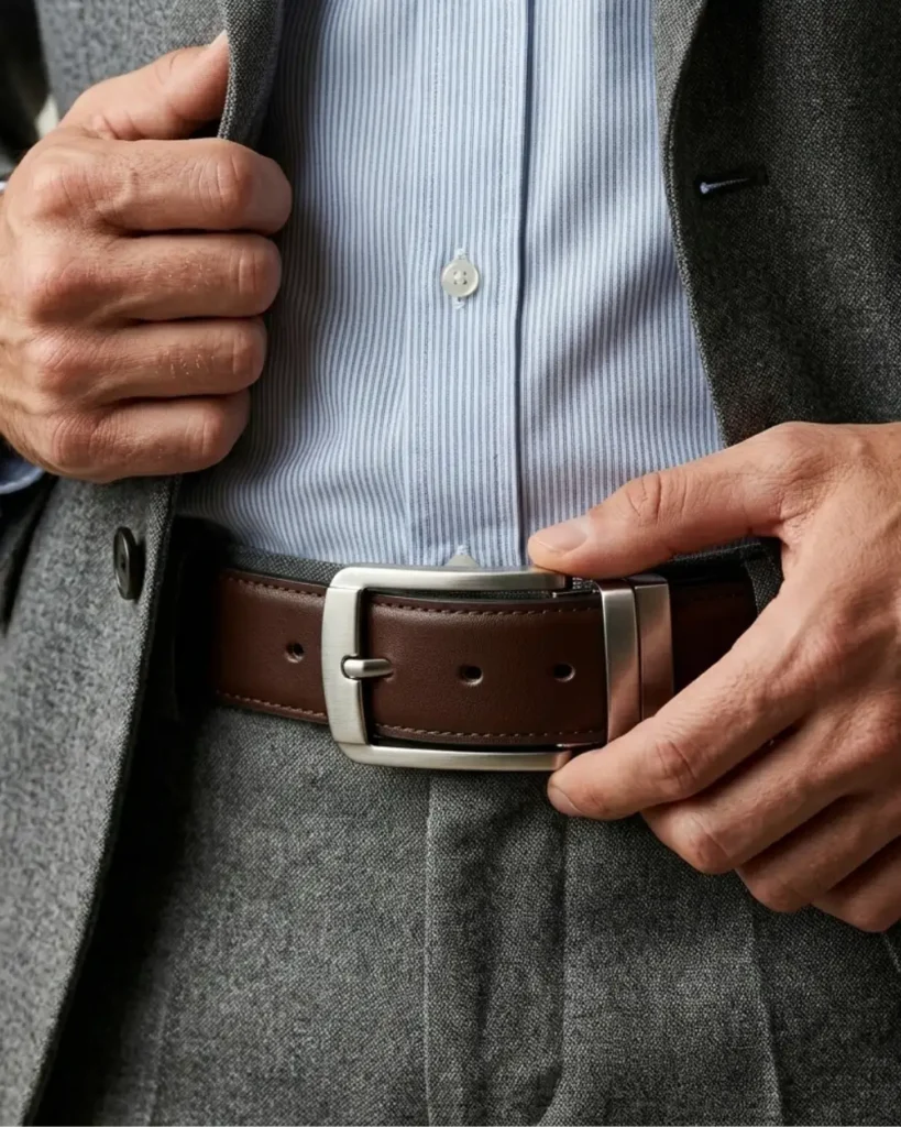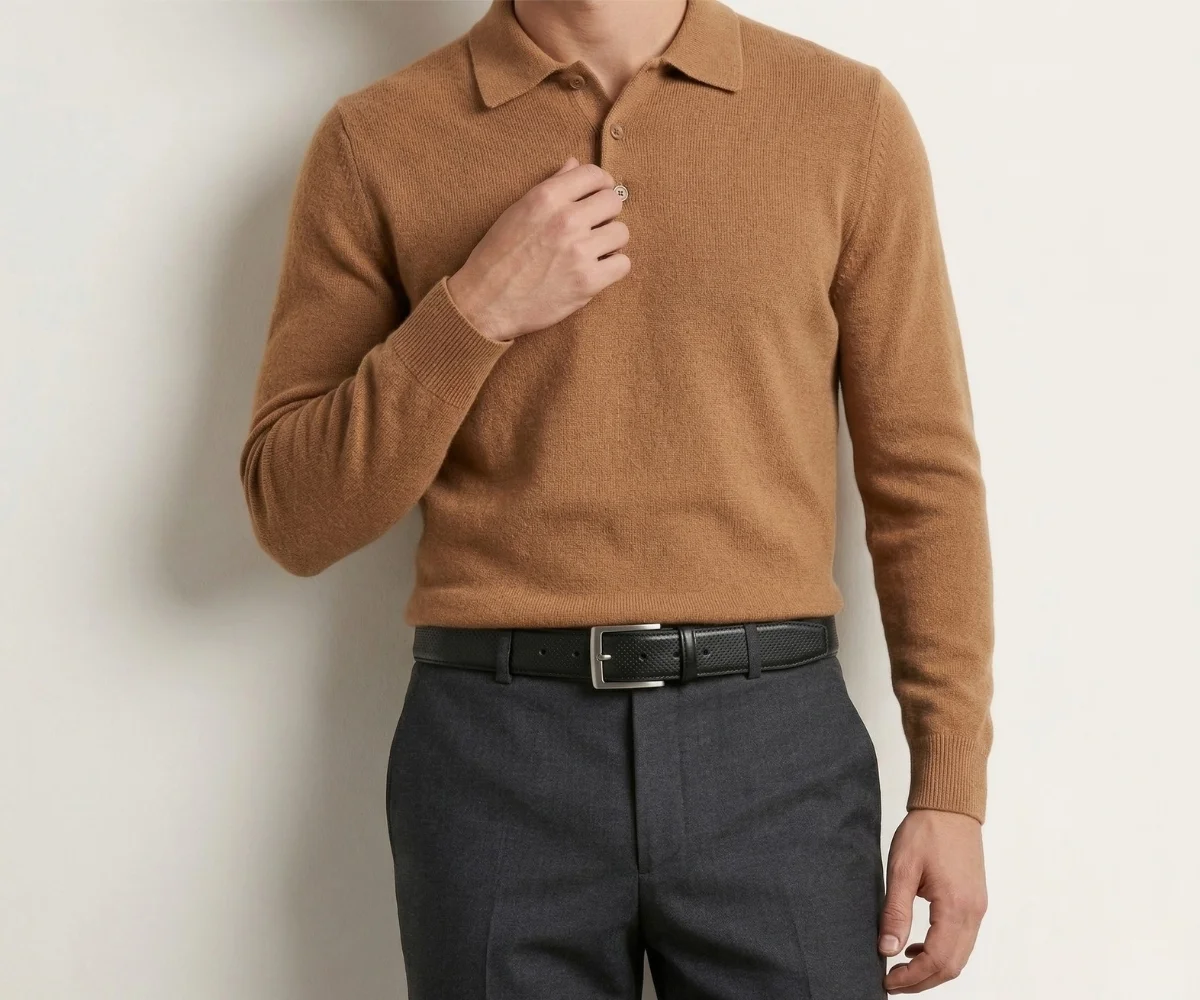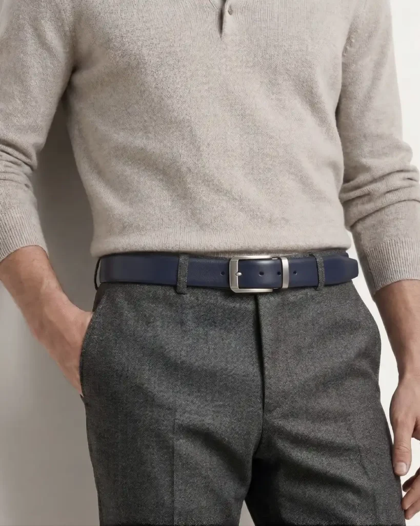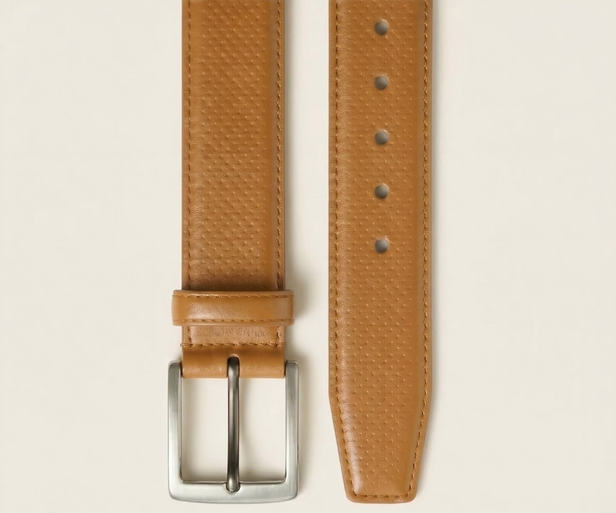 Este cinturón redefine la formalidad con una sofisticada piel napa grabada en un meticuloso patrón de micro-círculos. Su reverso en suave Vaqueta natural ofrece un confort excepcional y peso ligero. Rematado con costuras precisas y una hebilla minimalista plateada, es el toque de textura audaz que define un estilo diferencial.