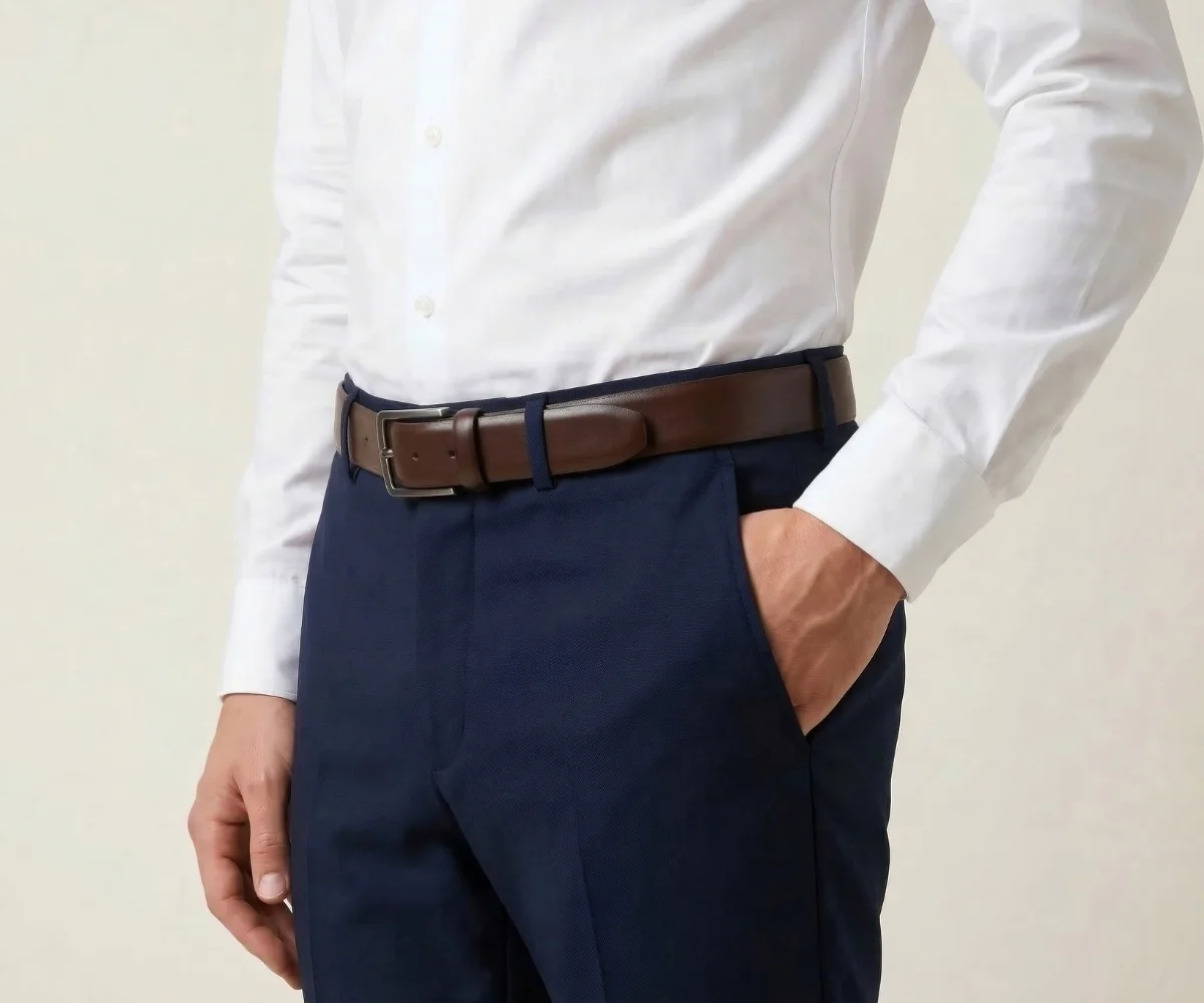 Rodee la zona elegida con la cinta métrica y anote la cifra donde se solapa. También puede medir el largo de su cinturón favorito desde la mitad de la hebilla hasta el orificio que más utilice.