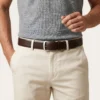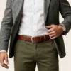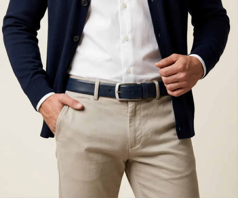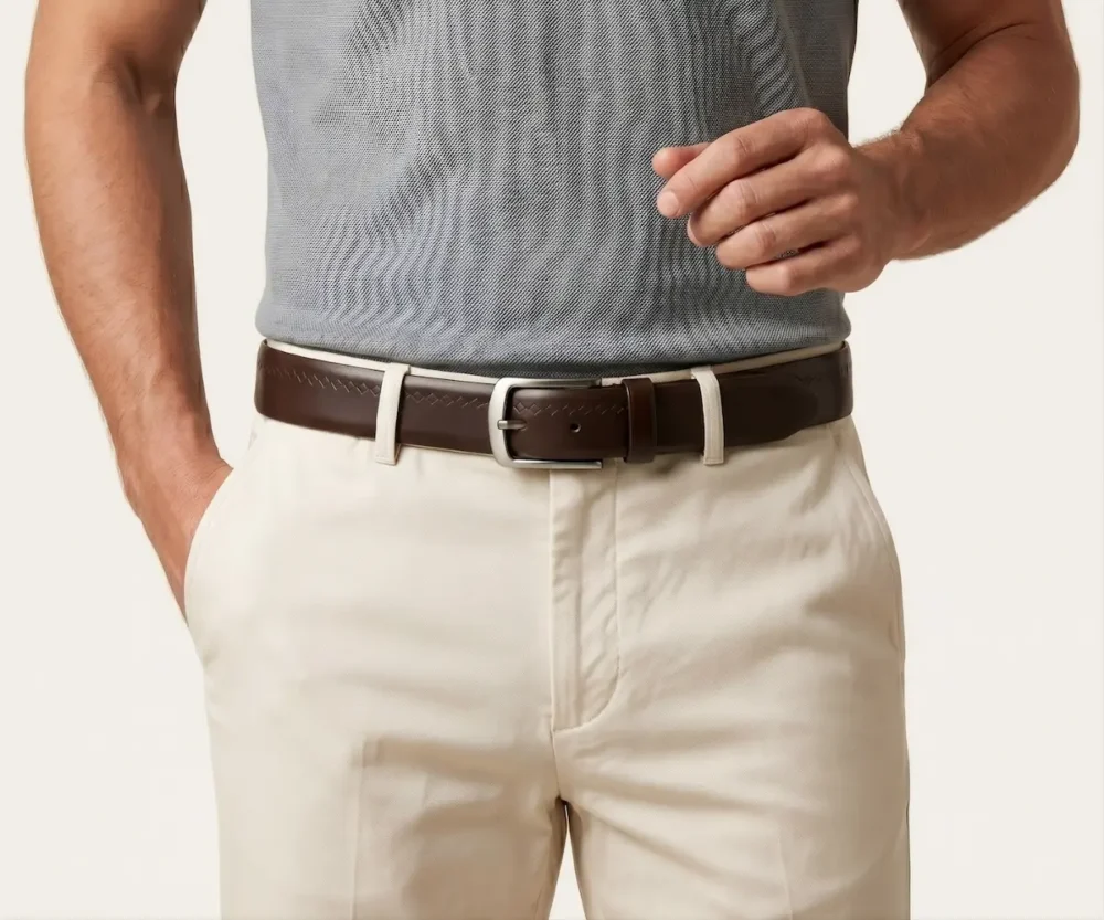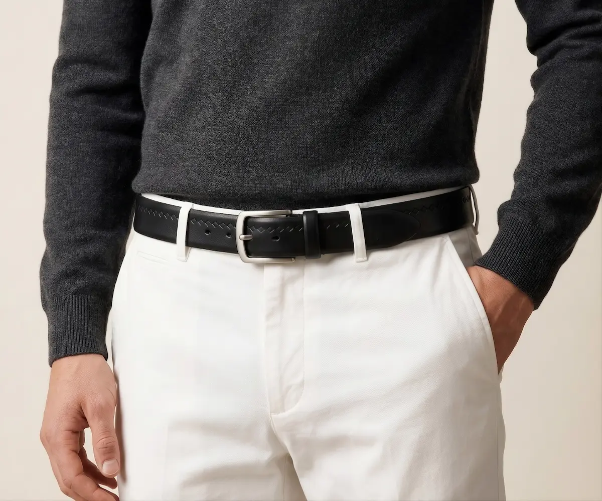 Nuestra pieza transforma un cuero napa superior en un lienzo para la alta artesanía, destacando un sofisticado patrón de rombos tejido a mano que no encontrarás en ningún otro lugar. Su robusta arquitectura de 40 mm está calibrada a la perfección para coronar desde un pantalón drill hasta un denim premium. Creado para dominar tanto el ritmo de la oficina como la sofisticación de la noche.