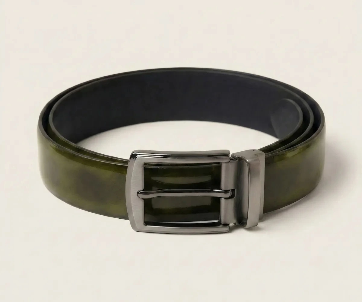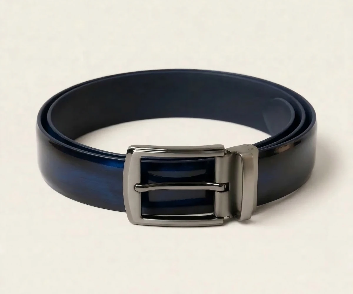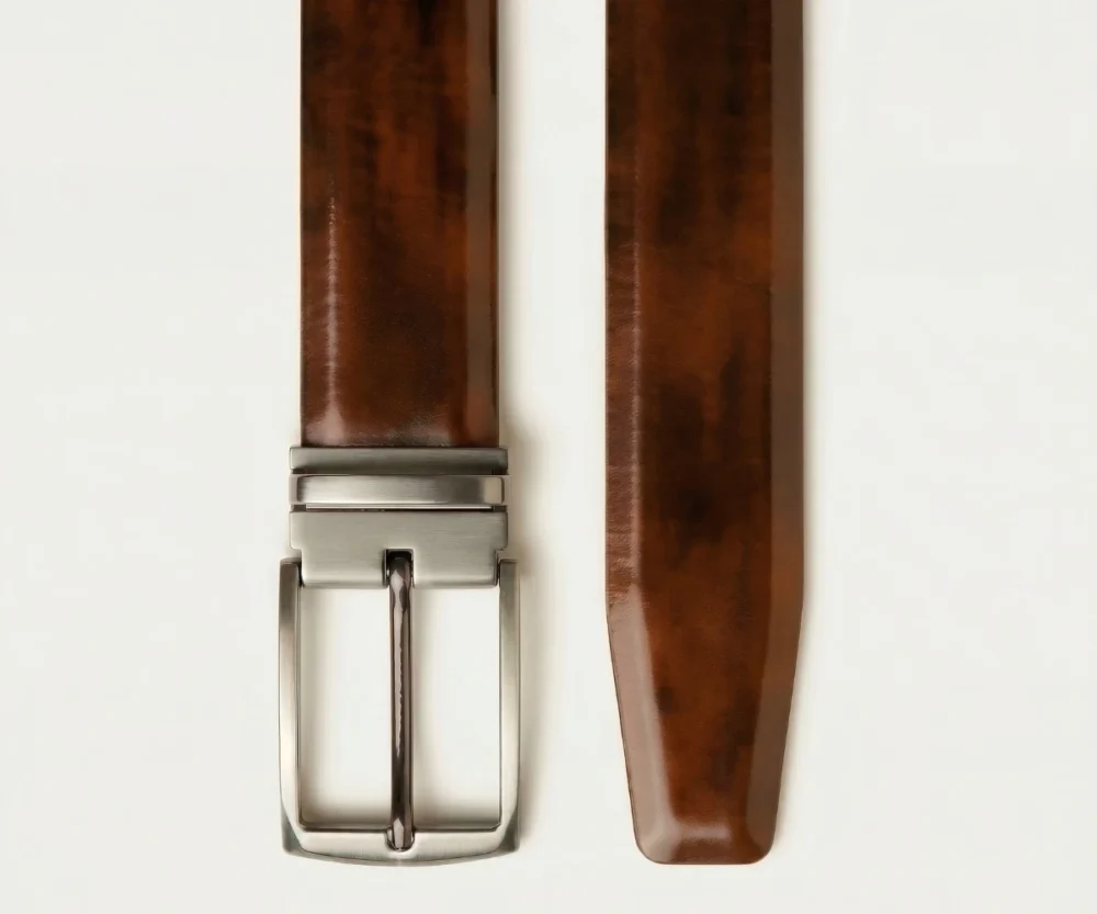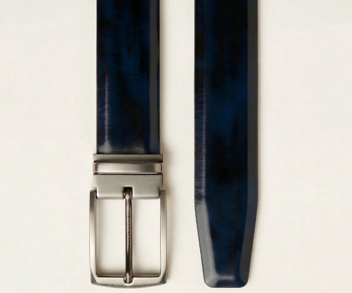 La máxima expresión de la elegancia sin costuras. Este cinturón doblefaz fusiona la versatilidad de una hebilla giratoria con la exclusividad del legendario cuero Florantik. Su acabado glaseado es el resultado de un meticuloso proceso artesanal de veteado manual, donde capas de color se superponen y revelan un patrón marmorizado único en cada pieza. Un cinturón sofisticado e irrepetible, diseñado para el caballero que exige distinción absoluta.