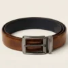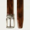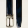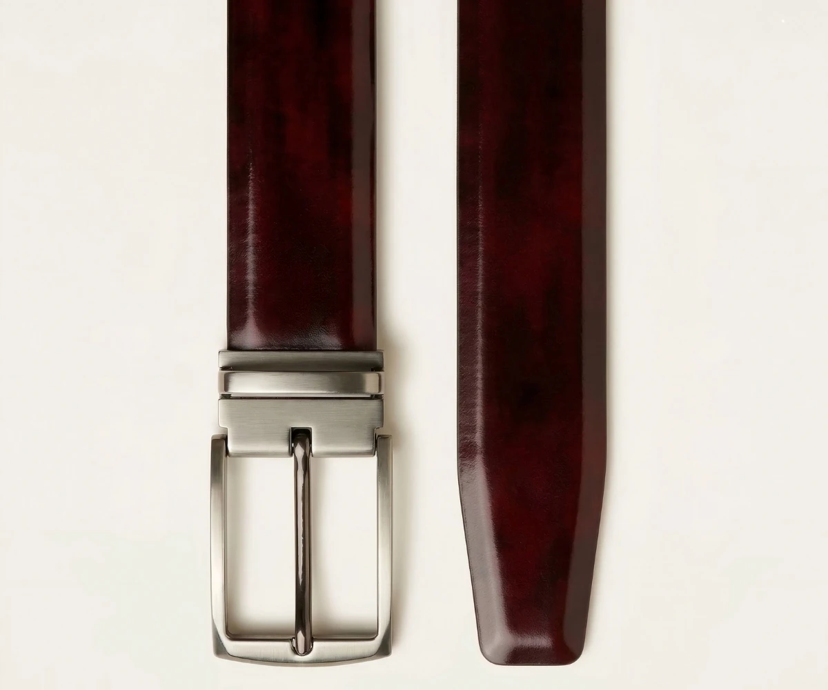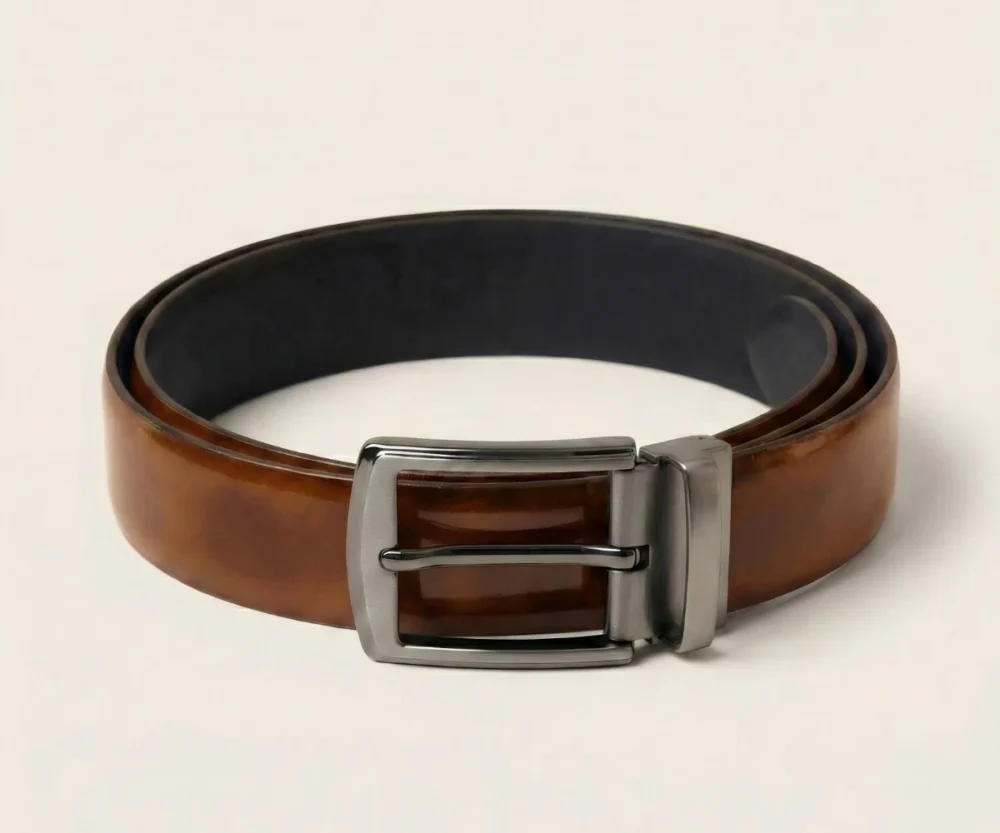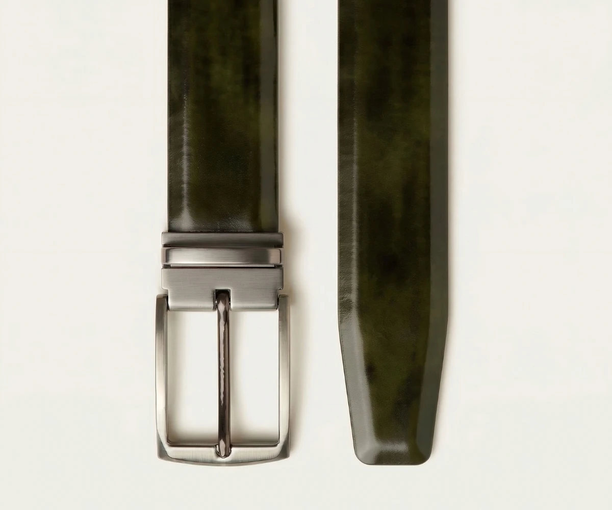 La máxima expresión de la elegancia sin costuras. Este cinturón doblefaz fusiona la versatilidad de una hebilla giratoria con la exclusividad del legendario cuero Florantik. Su acabado glaseado es el resultado de un meticuloso proceso artesanal de veteado manual, donde capas de color se superponen y revelan un patrón marmorizado único en cada pieza. Un cinturón sofisticado e irrepetible, diseñado para el caballero que exige distinción absoluta.